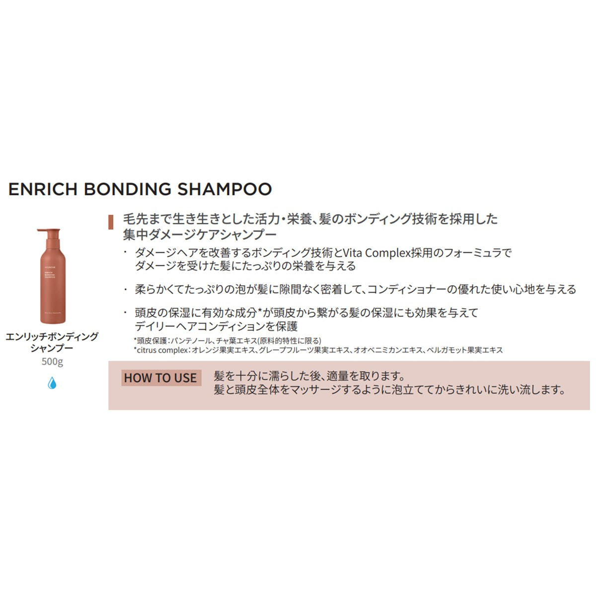ボンディング技術を採用した集中ダメージケアシャンプー。