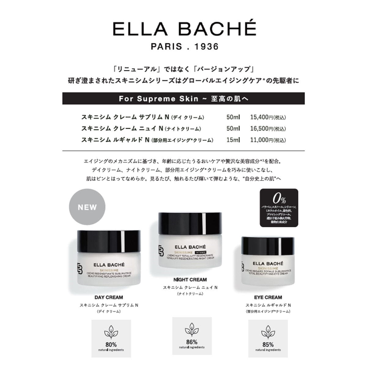 フルーツ酸(A.H.A)、ヒアルロン酸、海藻などを世界で初めて化粧品に使用したのもエラバシェです。