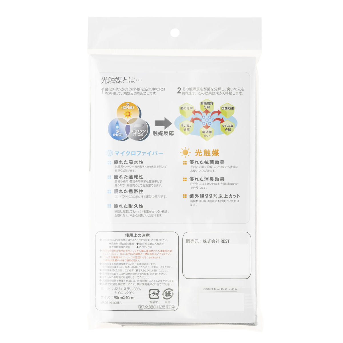 「エクセレントタオル」は、抜群の吸水性をもつマイクロファイバーに光触媒加工を施したタオルです。