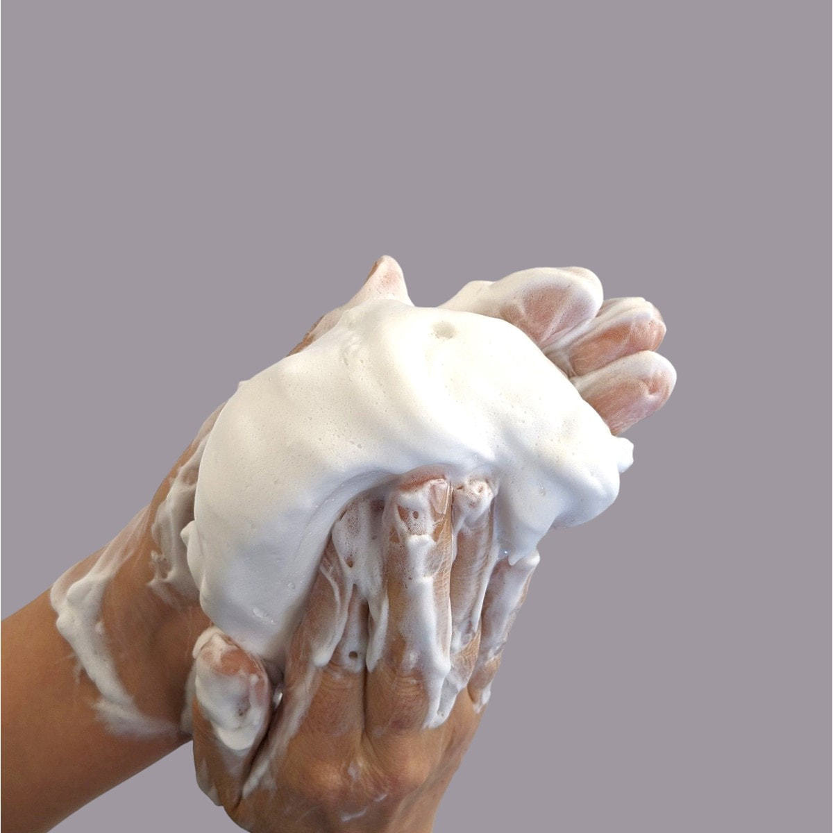 濃密泡で透明肌へ。泡立てネットに適量(さくらんぼ一粒分ほど)取り出してよく泡立てて ください。